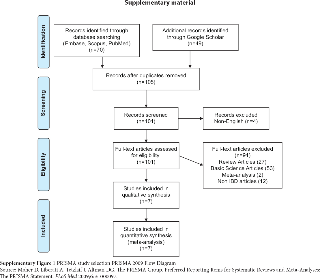 We conducted a comprehensive search of several databases and conference proceedings, including PubMed, EMBASE, Google Scholar, SCOPUS and Web of Science databases, for publications from January 2000 to September 2018. We followed the Preferred Reporting Items for Systematic Reviews and Meta-Analyses (PRISMA) guidelines [7], using a predefined protocol to identify studies reporting on the use of curcumin in UC. An experienced medical librarian using inputs from the study authors helped with the literature search.