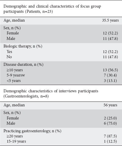 Methods Eight gastroenterologists and 23 patients with UC in Greece participated in semi-structured interviews and focus groups, respectively. The focus groups and interviews were audio-recorded, transcribed and coded, utilizing thematic analysis until data saturation was achieved.